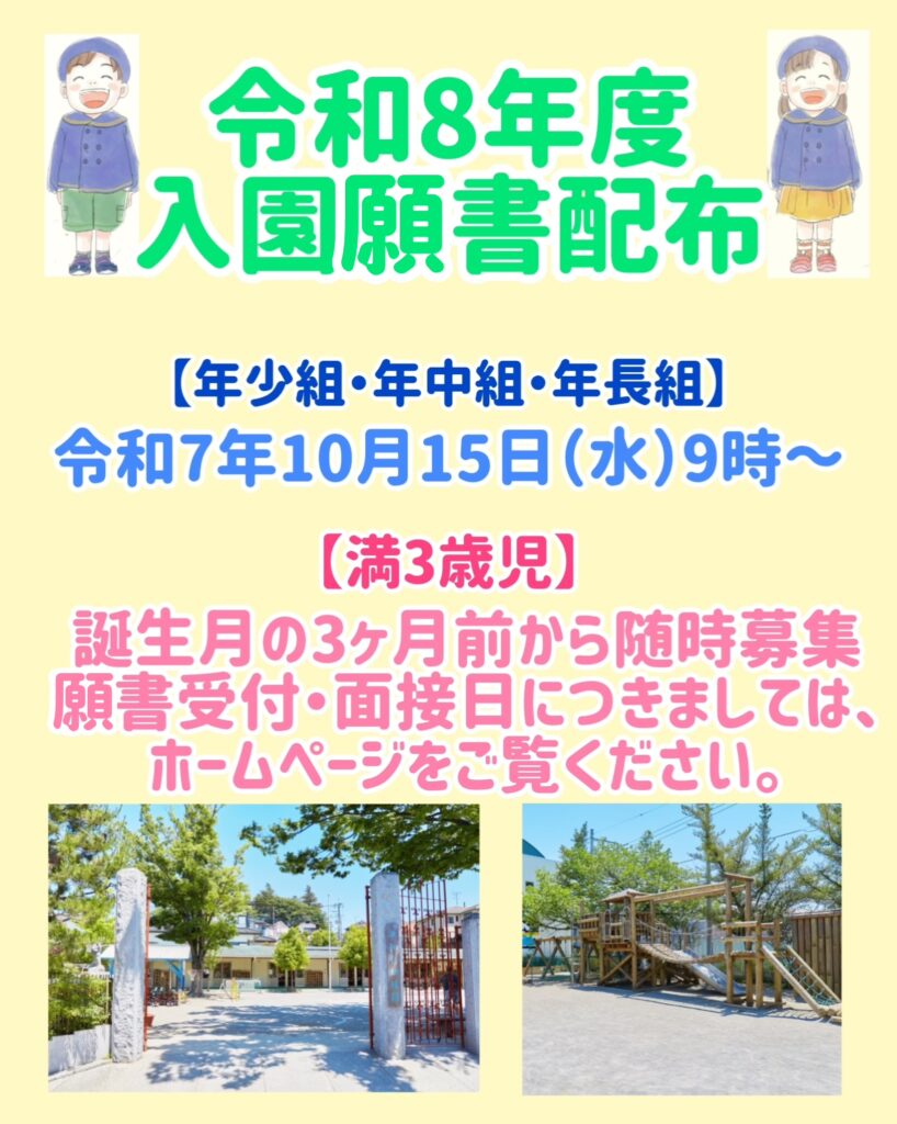 🌸令和8年度入園願書10月15日(水)より配布します🆕